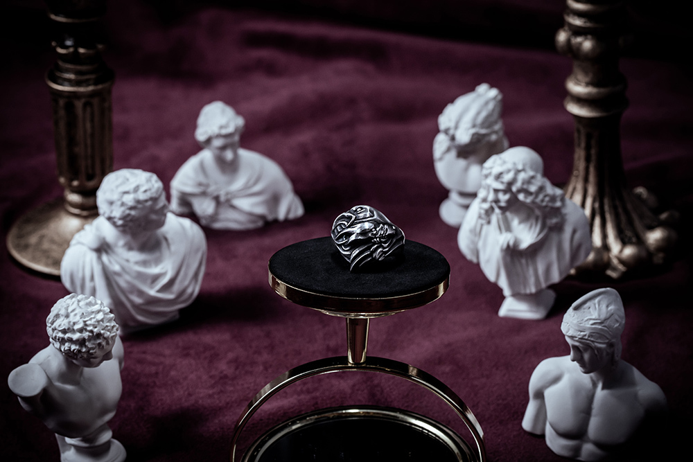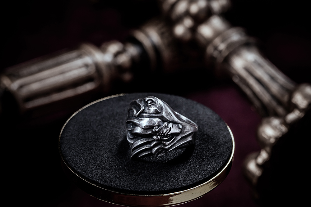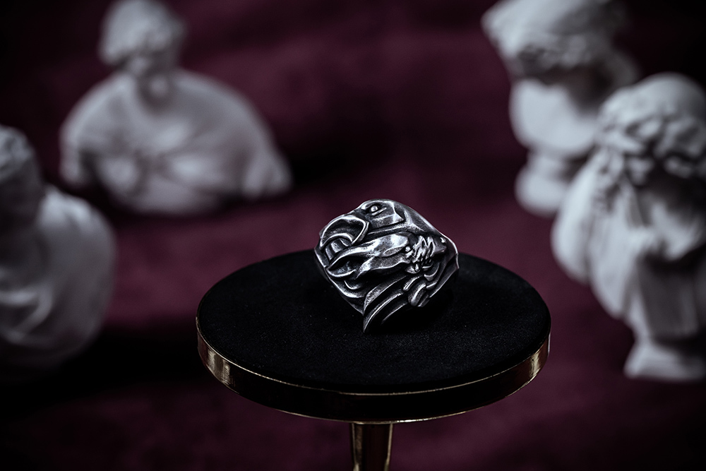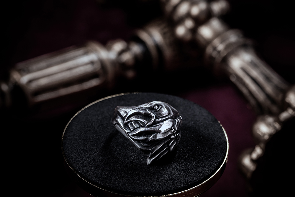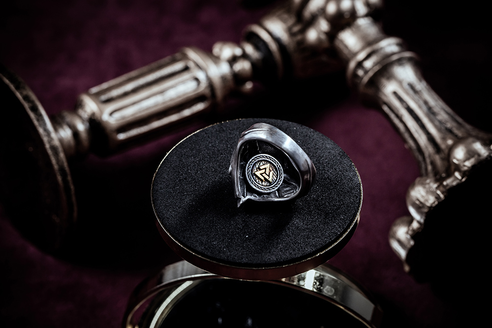 並在戒內鑲上金色的「VALKNUT」三角圖騰