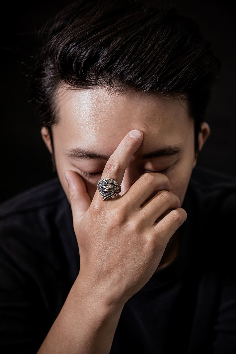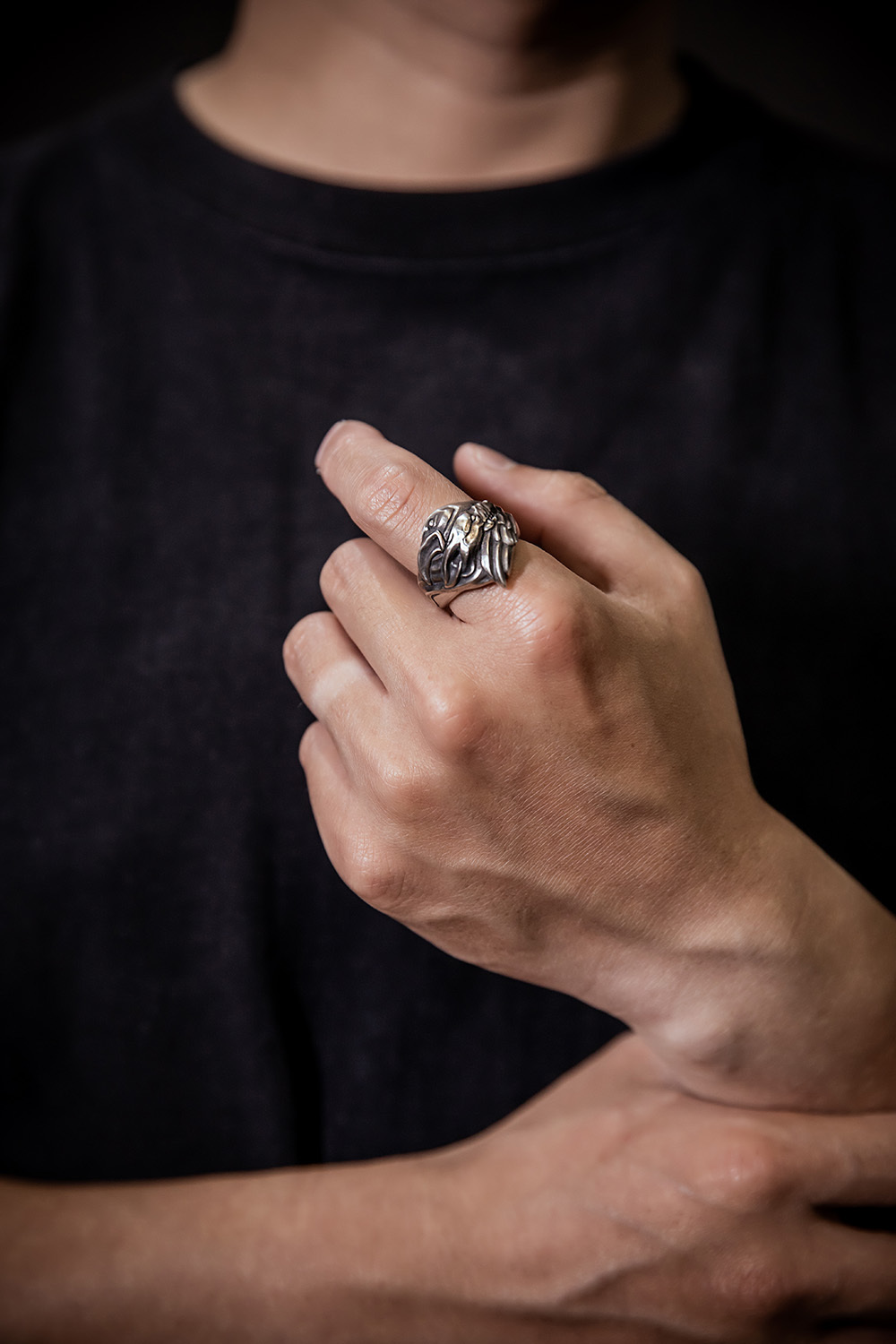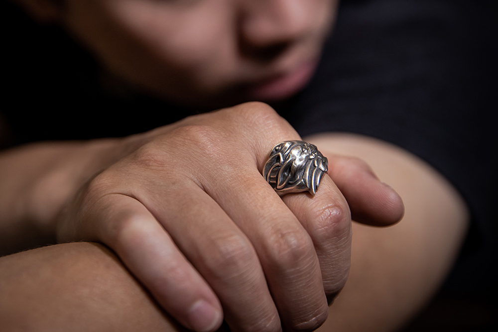 並在戒內鑲上金色的「VALKNUT」三角圖騰