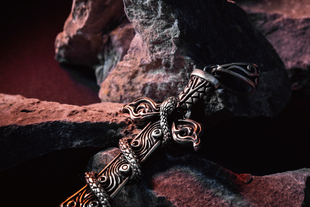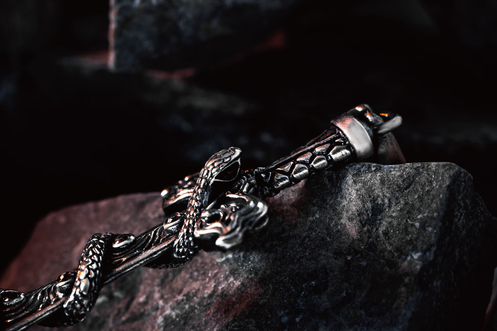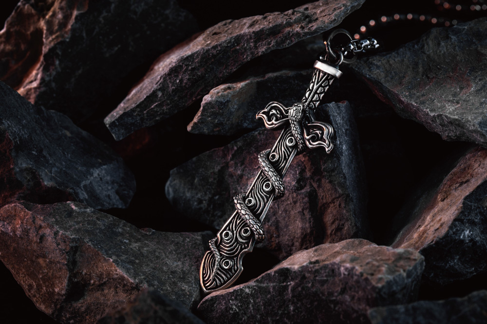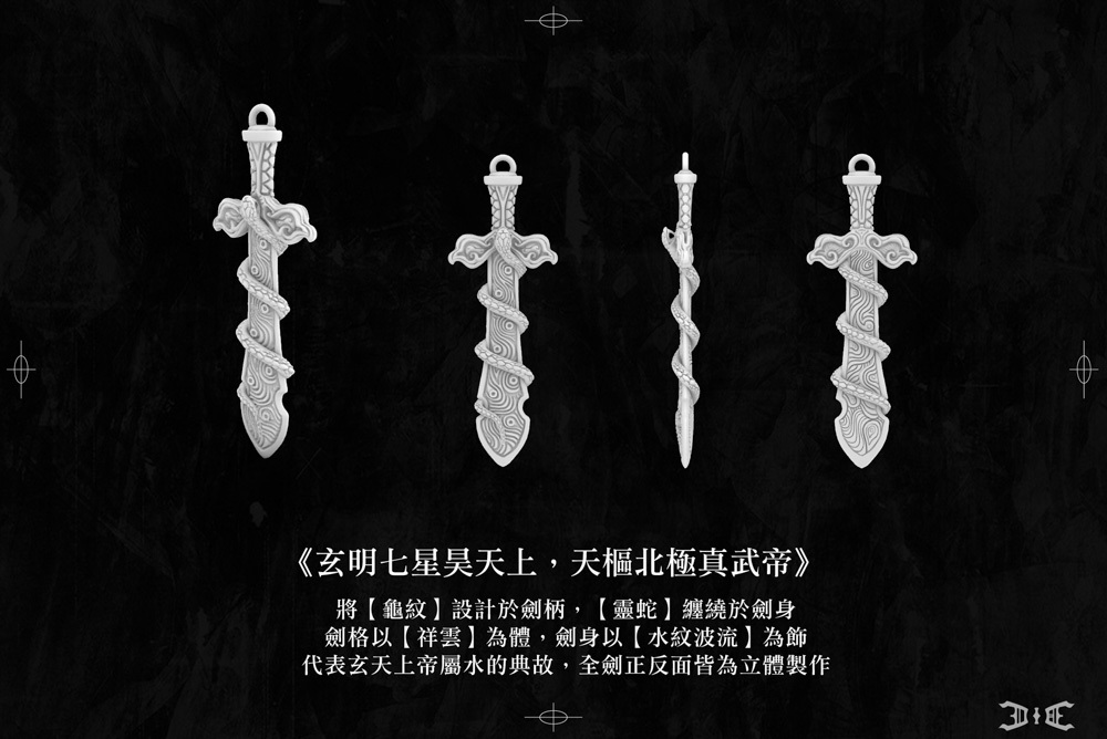 於是我們將〈龜紋〉設計於劍柄,〈靈蛇〉纏繞於劍身