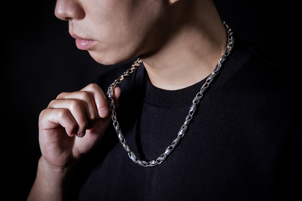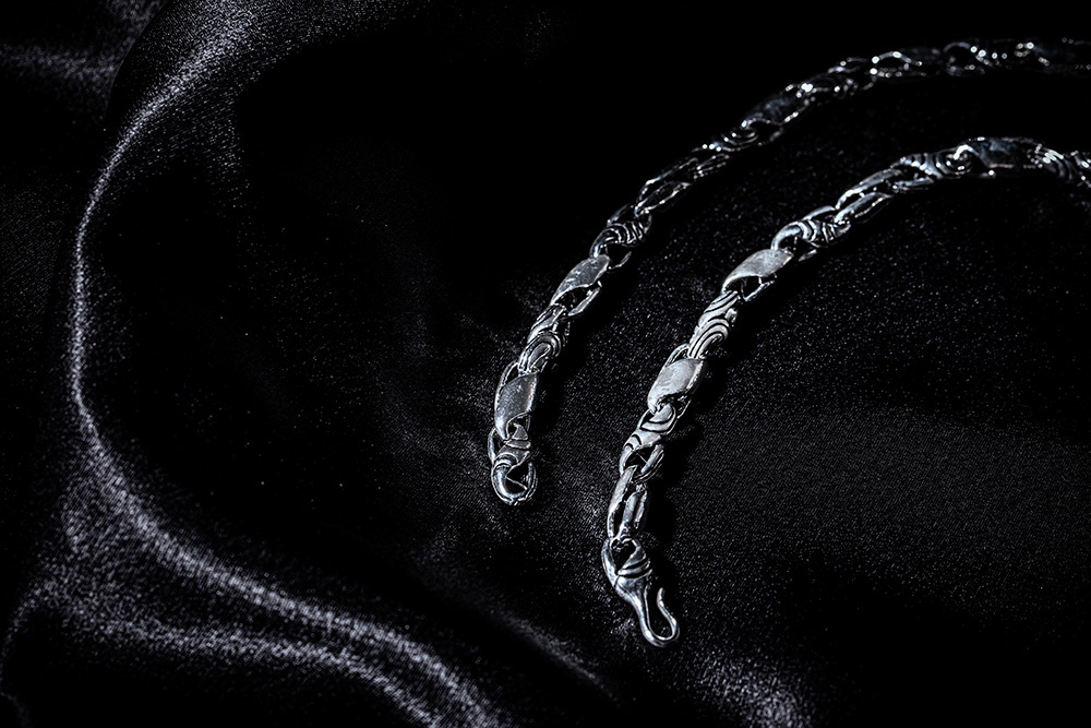 925純銀 霸.黑白扭紋粗曠 銀鍊