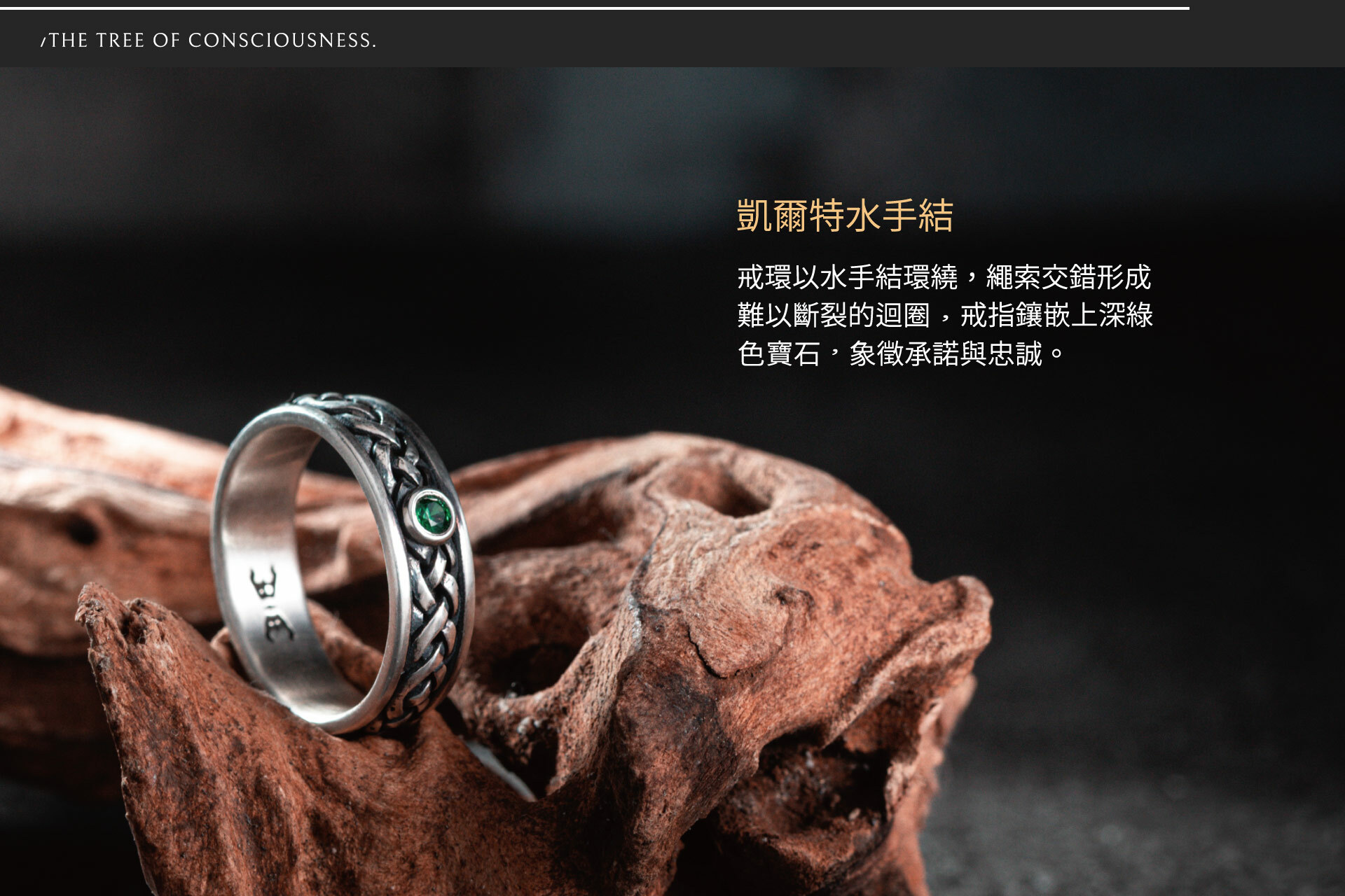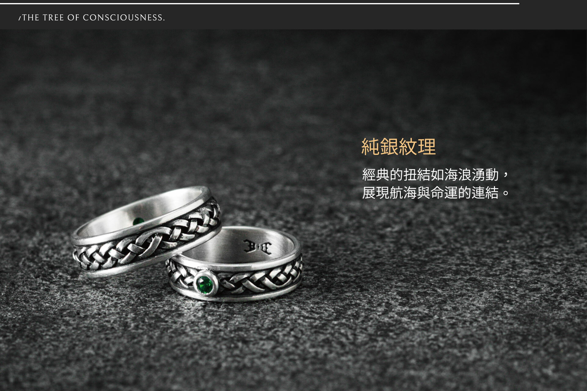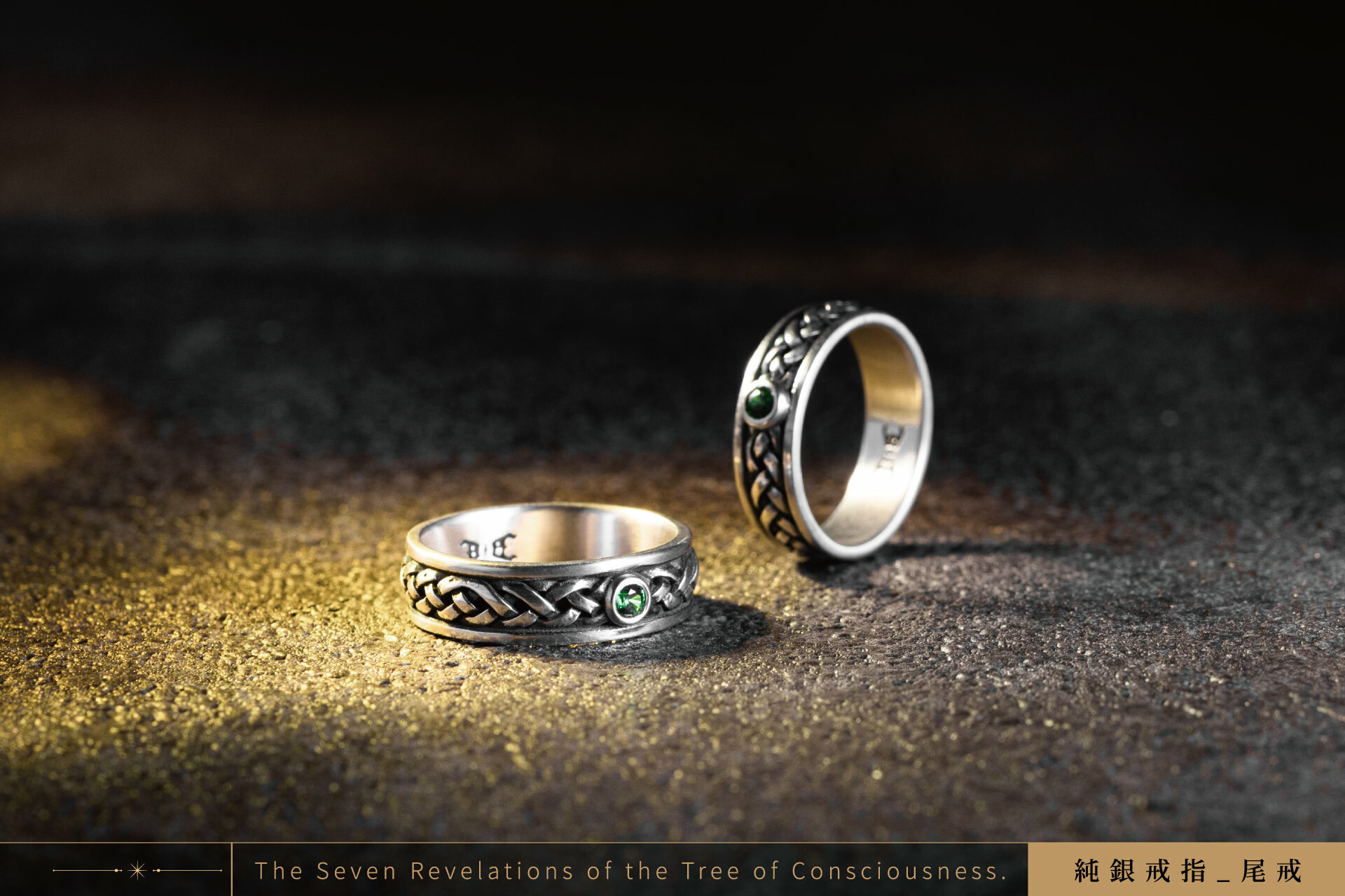 戒指鑲嵌上深綠色寶石,象徵承諾與忠誠,如同海洋之眼,見證彼此的羈絆