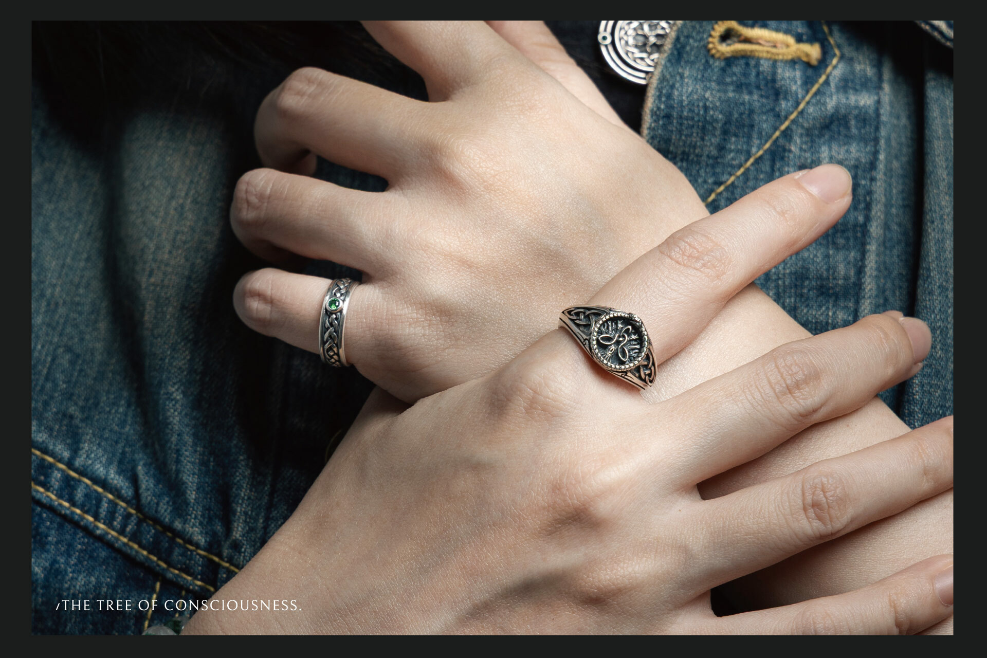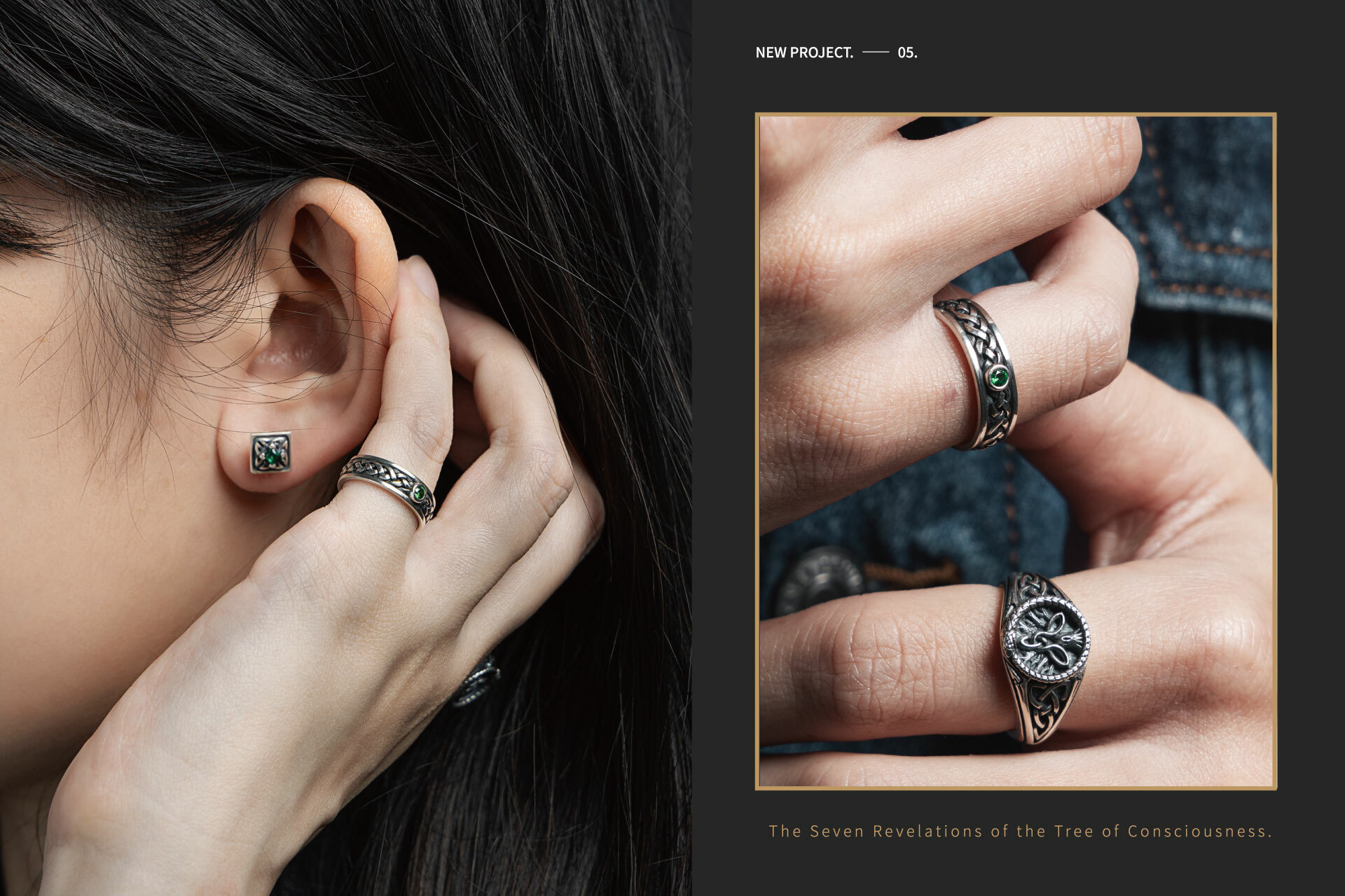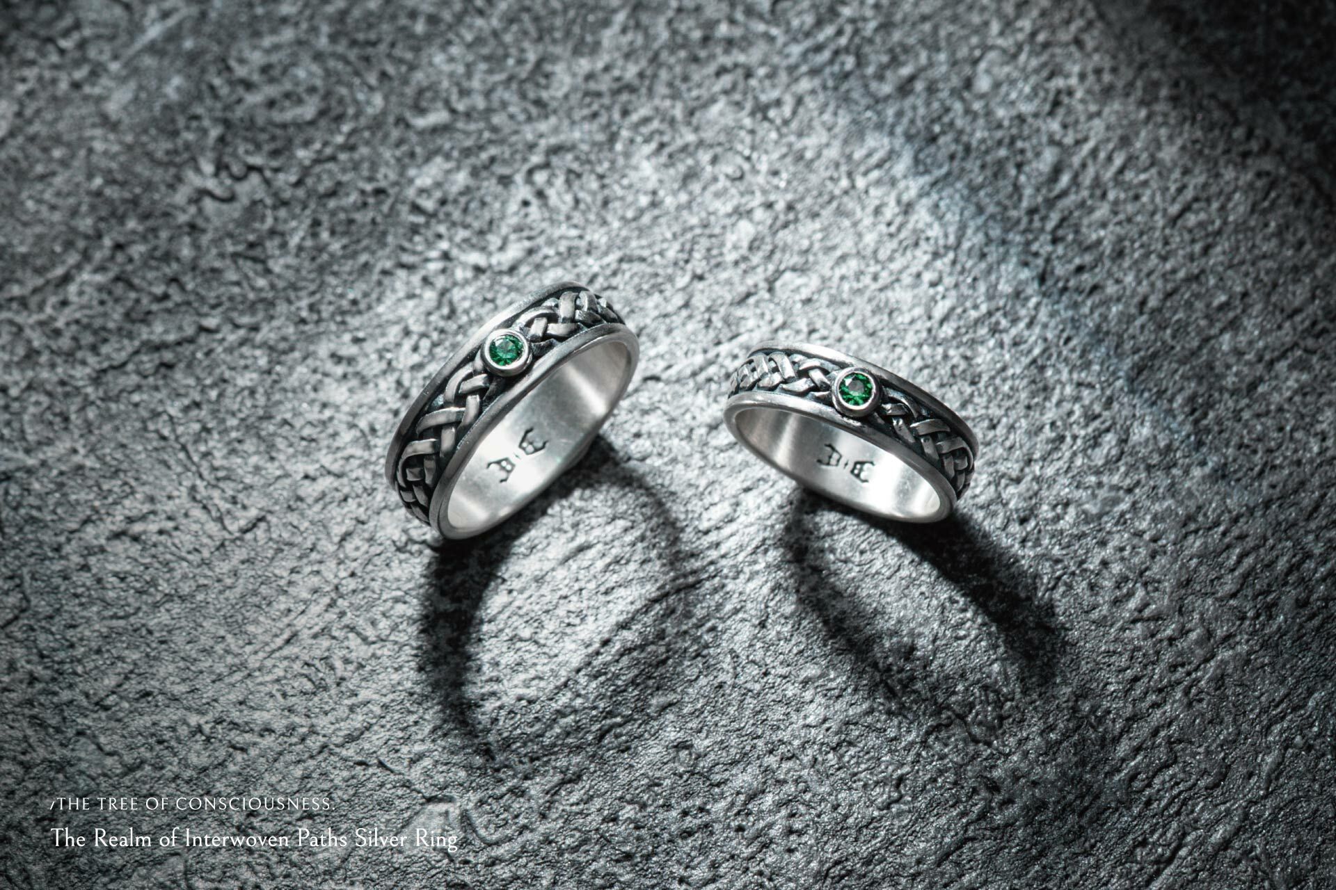 戒指鑲嵌上深綠色寶石,象徵承諾與忠誠,如同海洋之眼,見證彼此的羈絆